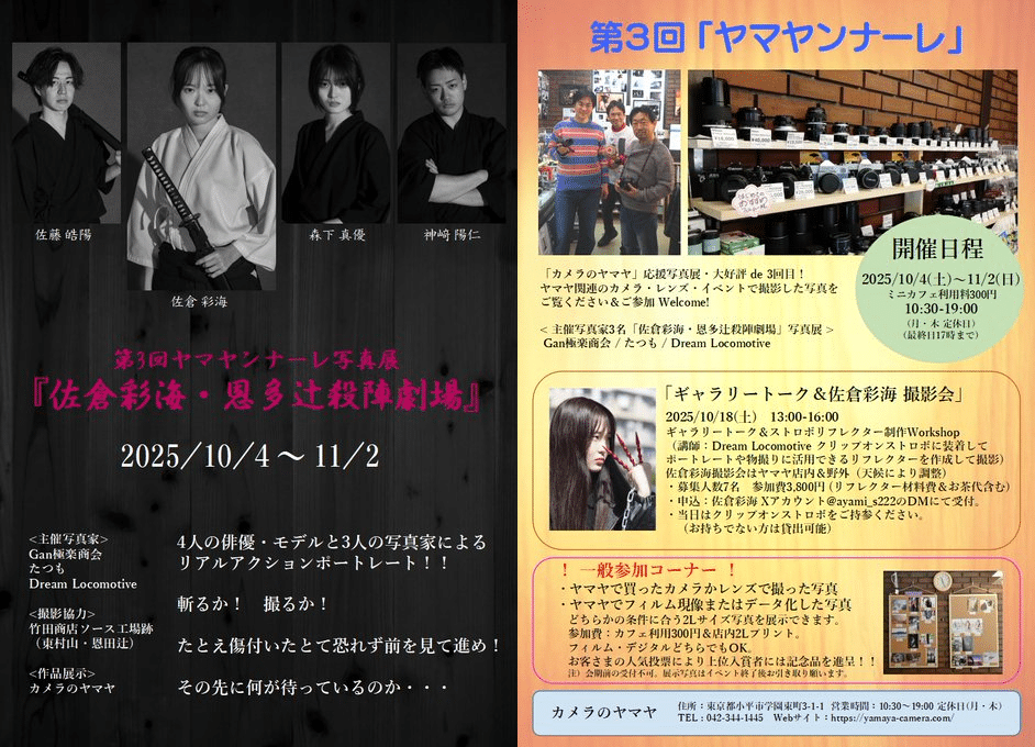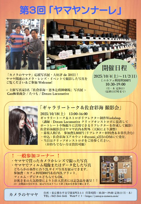 【第3回 ヤマヤンナーレ】写真展 開催のお知らせ 2025/10/4㈯ー11/2㈰ カメラのヤマヤ・カフェギャラリー 10:30-19:00(最終日17:00まで) ㈪㈭定休日 ☕ご観覧の方は、ミニカフェ利用をお願いします(300円 ホットドリンクバー・WiFi・電... -
